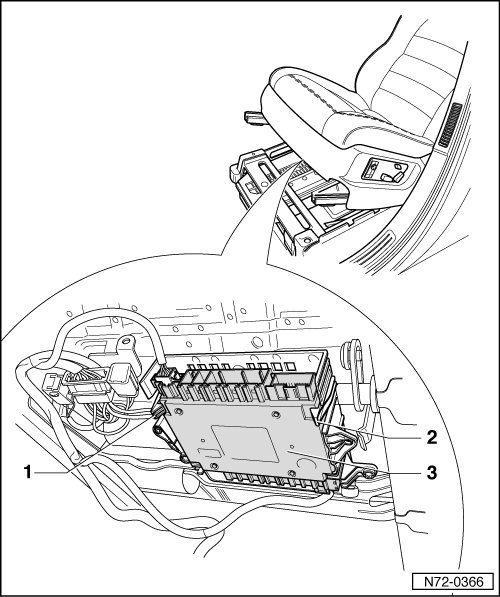 - Lift front of seat until the memory seat/steering column adjustment control module (J136) becomes accessible.