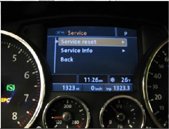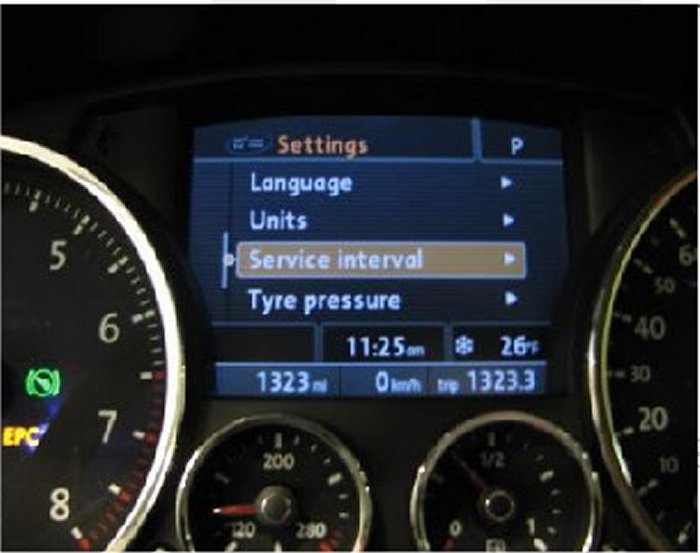 NOTE: After resetting the service reminder, dashes will be displayed in "Service in" miles and days values. The vehicle must be driven approximately 100 miles before the correct values will be displayed.
