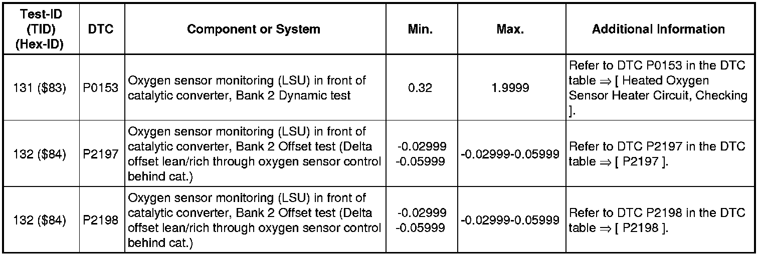 - If any component or system fails to meet the specified values, refer to Diagnostic "Mode 03: Interrogating Fault Memory" to check for stored DTC's or the corresponding diagnostic repair procedure.