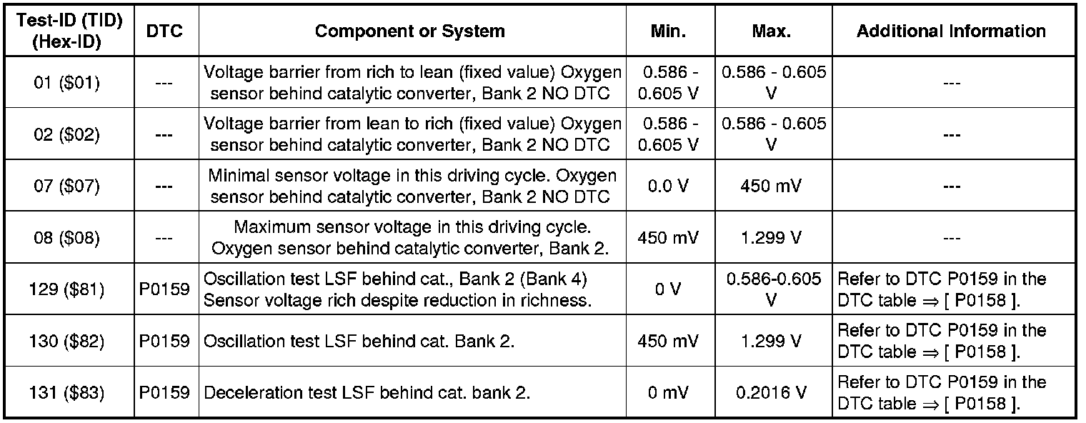 -Test-ID 05 ($05): Oxygen sensor in front of catalytic converter, Bank 2 (Bank 2 Sensor 1).