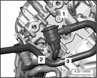 - Disconnect air guide hose - 1 - from Secondary Air Injection (AIR) combination valve.