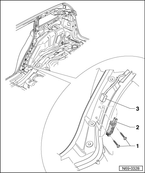 3 Rear Side Airbag Crash Sensor (on front Passenger side) -G257- => [ Rear Side Airbag Crash Sensors ] See Image Below.