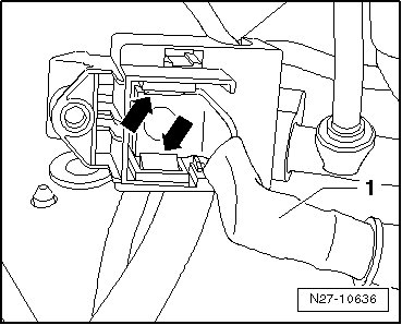 - Release both retaining tabs - arrows - and remove B+ wire connecting piece - 1 - downward from external starting point housing.