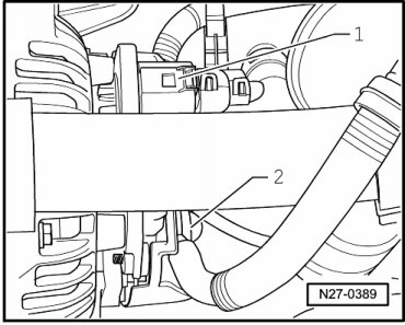 - Remove the ribbed belt together with the tensioner.