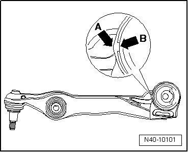 - Remove lower control arm from subframe and place wood block - arrow - between lower control arm and subframe.