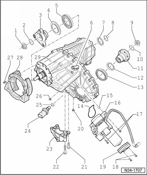 • The following components are integrated into the Transfer case motor -V253- :