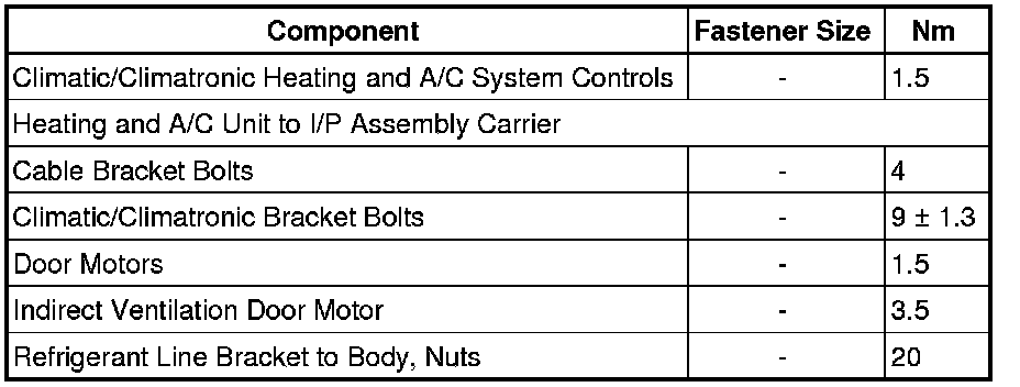 Climatic and Climatronic Components, Fastener Tightening Specifications