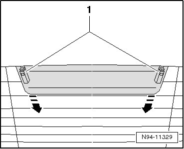 - Pull the high-mounted brake lamp in the - direction of the arrow - back out of the mounts - 1 -. Be careful of the connected wires.