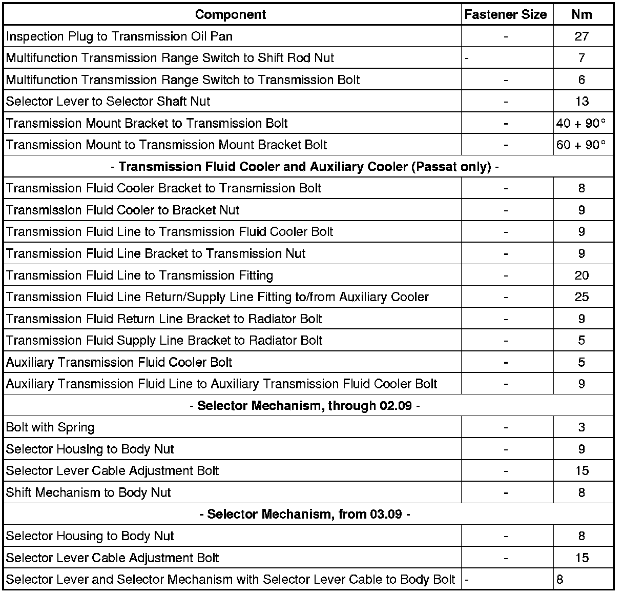 Fastener Tightening Specifications - Controls, Housing