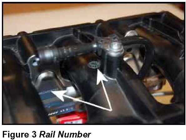 ^ Record rail number (Figure 3) and production time stamp (Figure 4) of intake manifold.