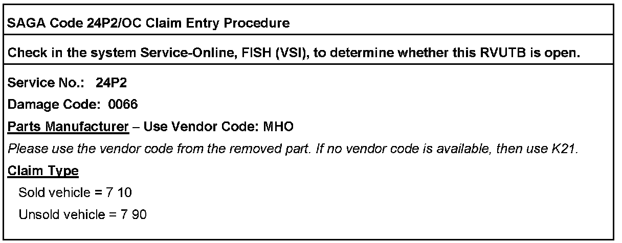 ^ Procedure is valid only for vehicles that show this RVUTB code in the ElsaWeb Campaign/Action Information screen on the day of repair. Claims will not be paid for work performed on vehicles not showing the RVUTB code open.