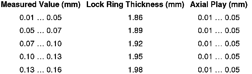 - Select the lock ring according to the table.