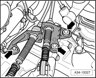 The cable bracket is secured with either two bolts and a nut - arrows -,