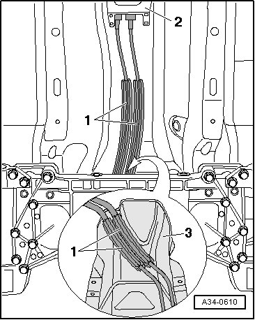 • The cables must be routed inside the depression in the heat shield - 3 -.