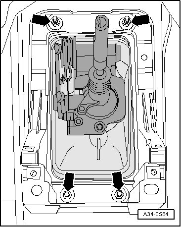 • If it is not possible to lower the shift housing, then the nuts on the shift housing are located under the bracket on the center console.