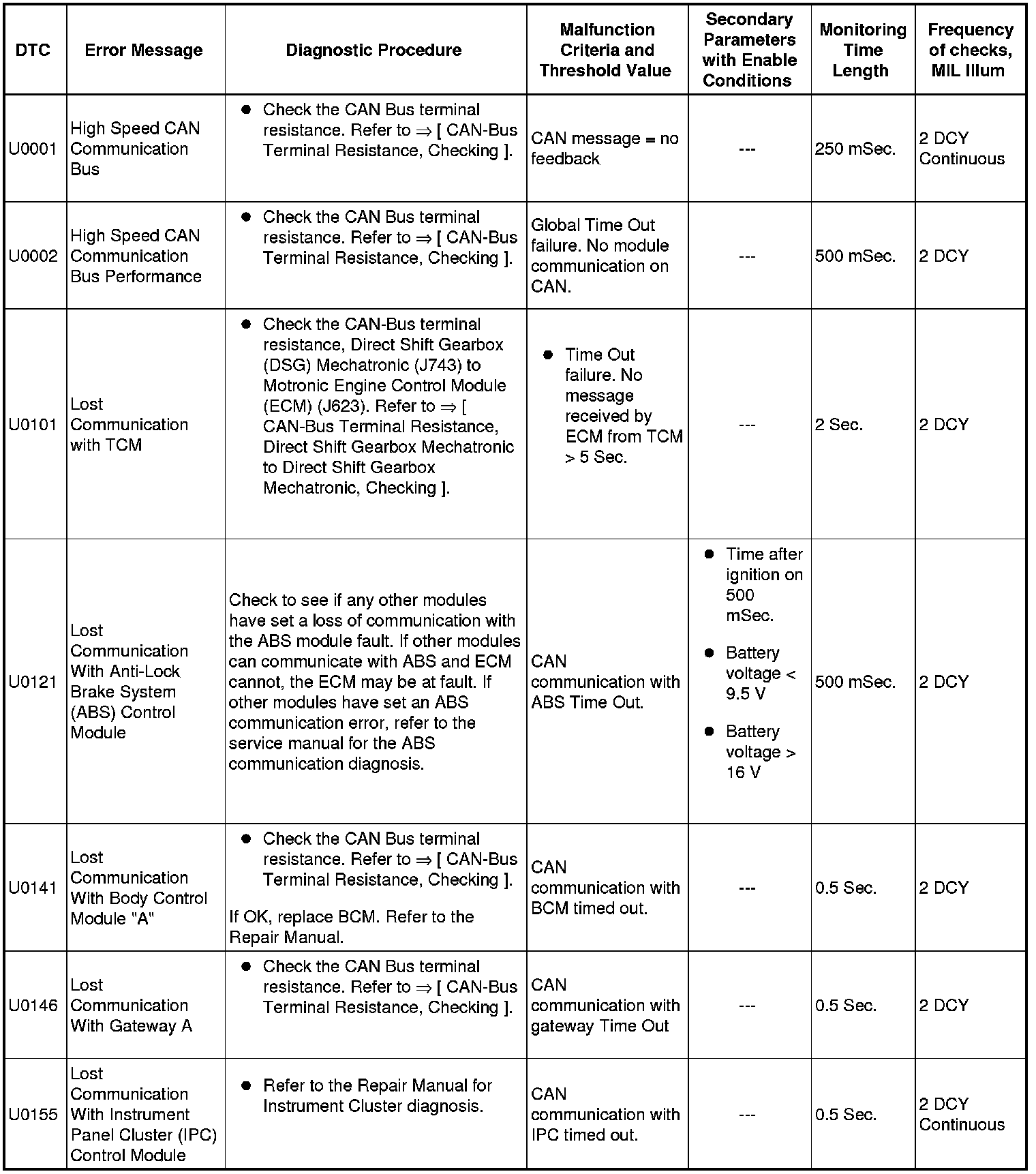 A L L Diagnostic Trouble Codes ( DTC )