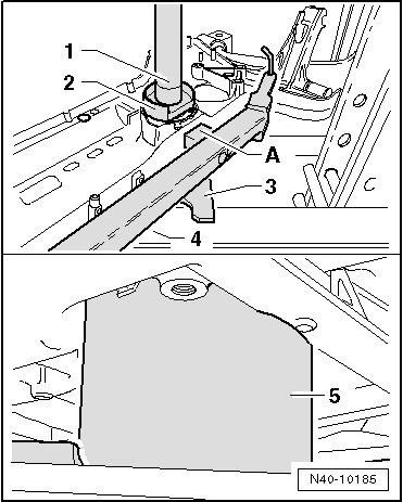 • The outer diameter - 1 - of both bonded rubber bushings must project up to 2 mm beyond the edge in the area of the opening for the pendulum support.