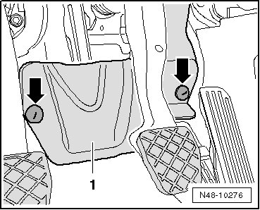 - Remove the drivers foot well trim retainers - arrows - and trim.