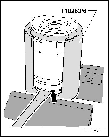 - Mount the pressure piece (T10263/3) - 2 - so that the flat side faces perpendicular to the direction of travel.