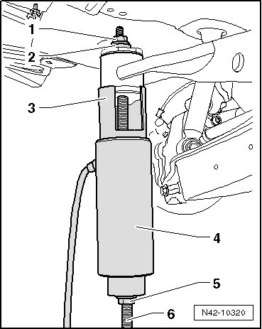 - Lower the subframe 10 cm using the engine-/gearbox jack (V.A.G 1383 A).
