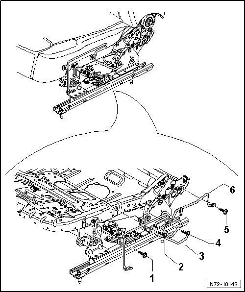 - Remove rear bracket - 6 - from seat frame.
