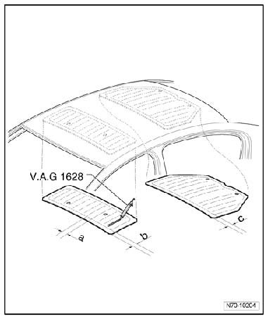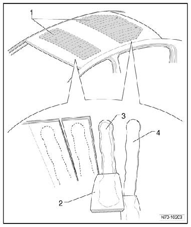- Apply adhesive D 190 MKD A3 on to insulation/reinforcements using cartridge gun V.A.G 1628.