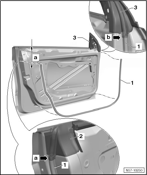 - Press the entire adhesive surface for the seal- 3 - to the door - 1 - firmly all the way around with the roller (3356).