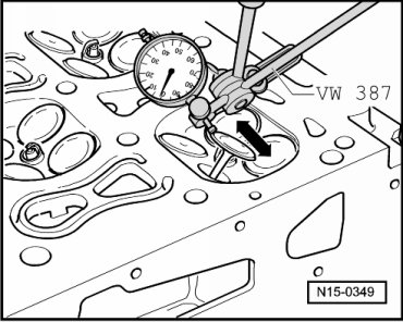 - Insert the new valve into the guide. The valve stem tip must be flush with the guide. Due to the slight difference in stem dimensions, ensure that only an intake valve is used in the intake guide and an exhaust valve is used in the exhaust guide.