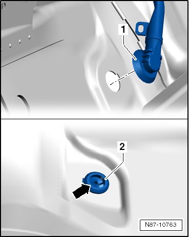 - Loosen the carpet in the right footwell and remove it until the condensation water hose - 1 - can be seen.