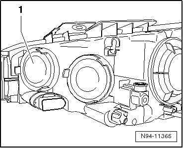 - Press the cornering lamp bulb - 1 - into the illustrated installation position in the reflector.