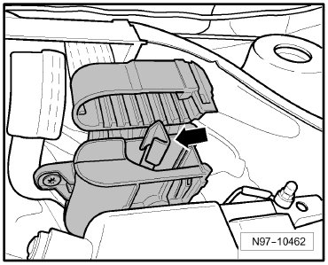 In engine compartment, front left -Arrow-
