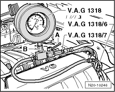 Fuel supply line is under high pressure! Wear protective goggles and protective clothing to prevent injuries and contact with skin. Before removing from hose connection consult the repair information for proper procedure.