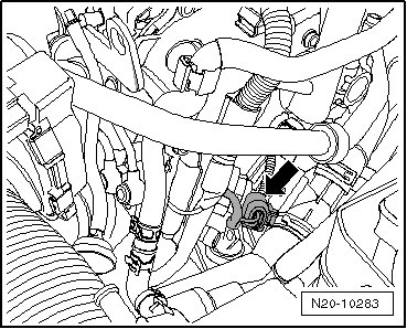 - Place a clean cloth around the connection point and carefully open to release the residual pressure of approximately 6 bar. Leaking fuel must be absorbed.