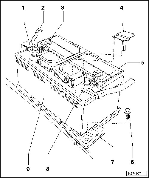 • Removal and installation, refer to => [ Battery, Removing and Installing ] Battery, Removing and Installing.