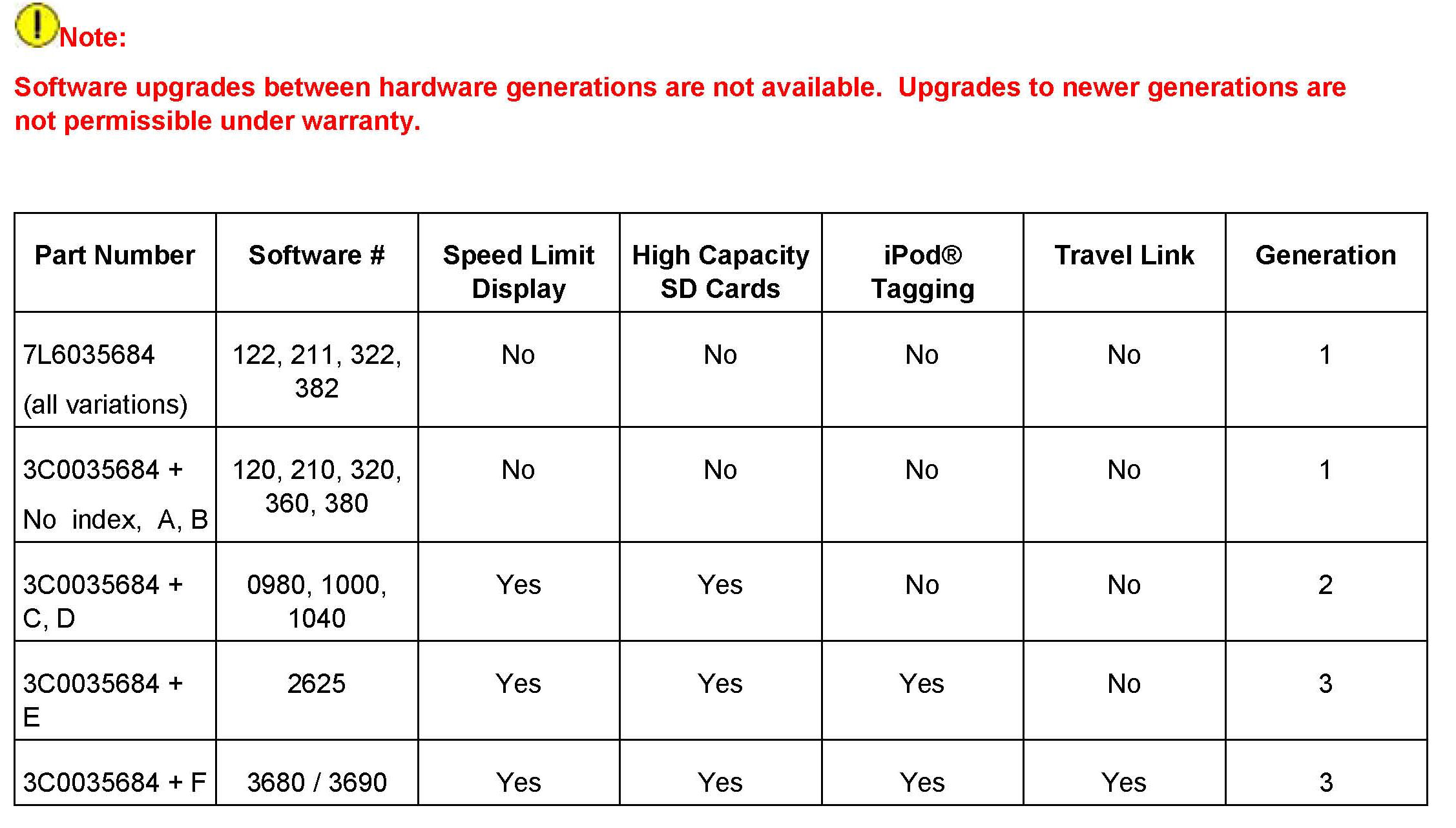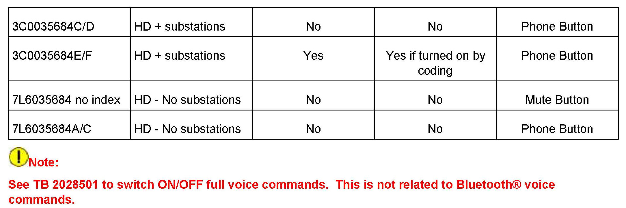 All part and service references provided in this Technical Bulletin are subject to change and/or removal.