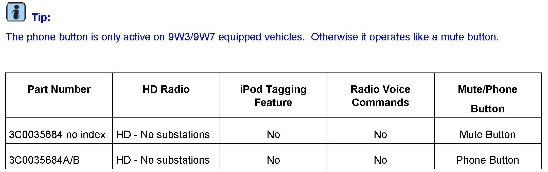 Always check with your Parts Dept. and Repair Manuals for the latest information.