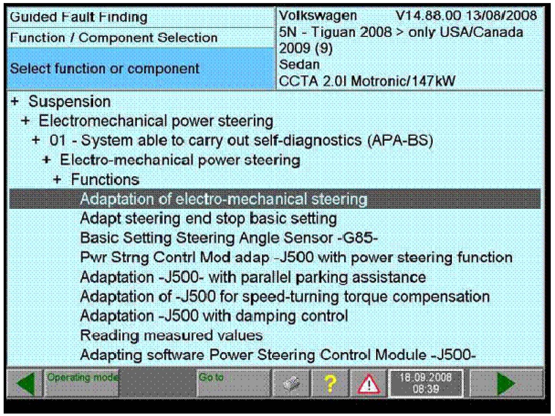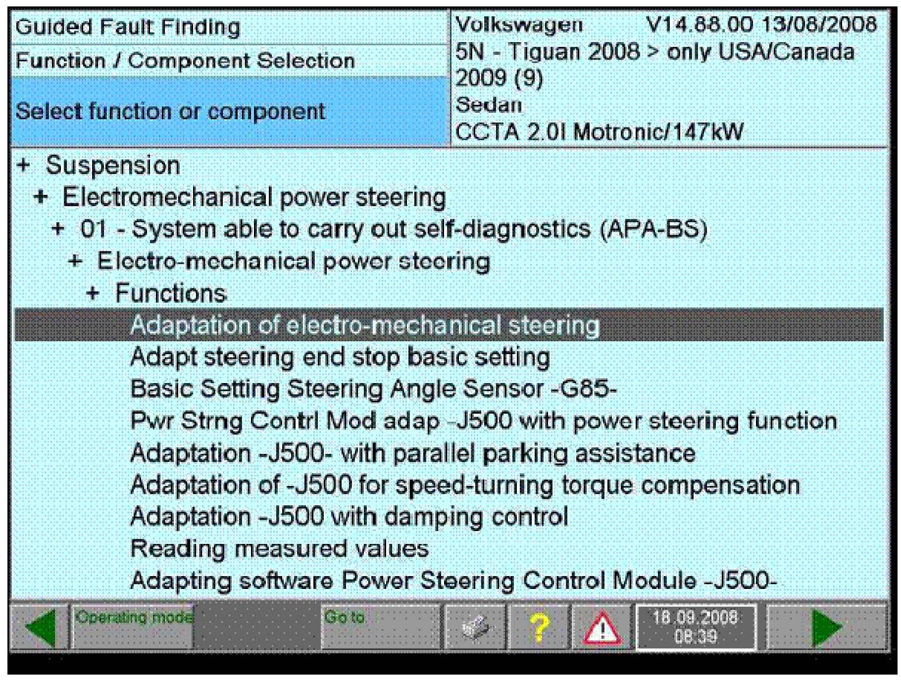 ^ Follow instructions until VAS 5051B/VAS 5052 screen states - Adaptation of power steering and/or speed turning torque/parallel parking assistance (depending on equipment), was performed correctly, -Program end-.