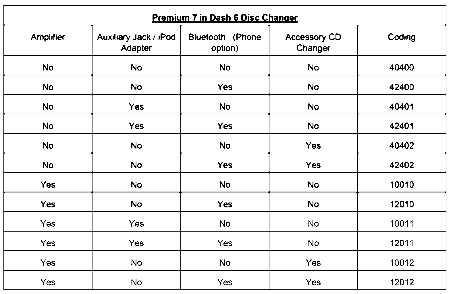 2020439 Supersedes T.B. Group 91 number 09-16 dated June 25, 2009 to update Premium 7 radio coding table.