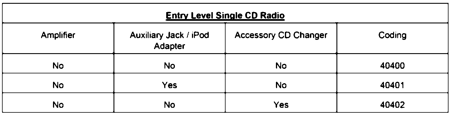 Only one accessory (Auxiliary jack, iPod adapter, or CD changer) can be equipped with Entry Level Single CD radio.