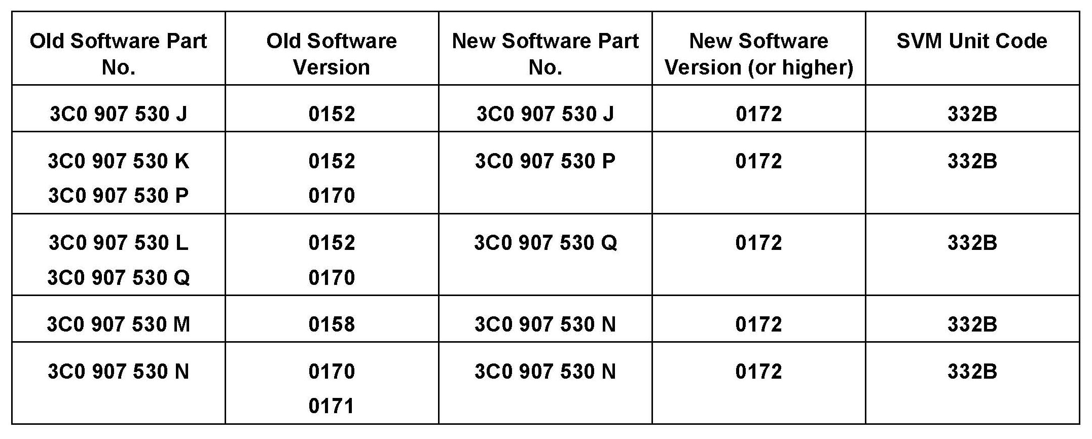 ^ Update the Engine Control Module using the SVM Unit code as listed in the table.