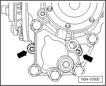 - First, tighten the bevel box new bolts - arrows - hand tight and then tighten them to specifications. Tightening specification: 40 Nm + an additional 90° (1/4) turn.