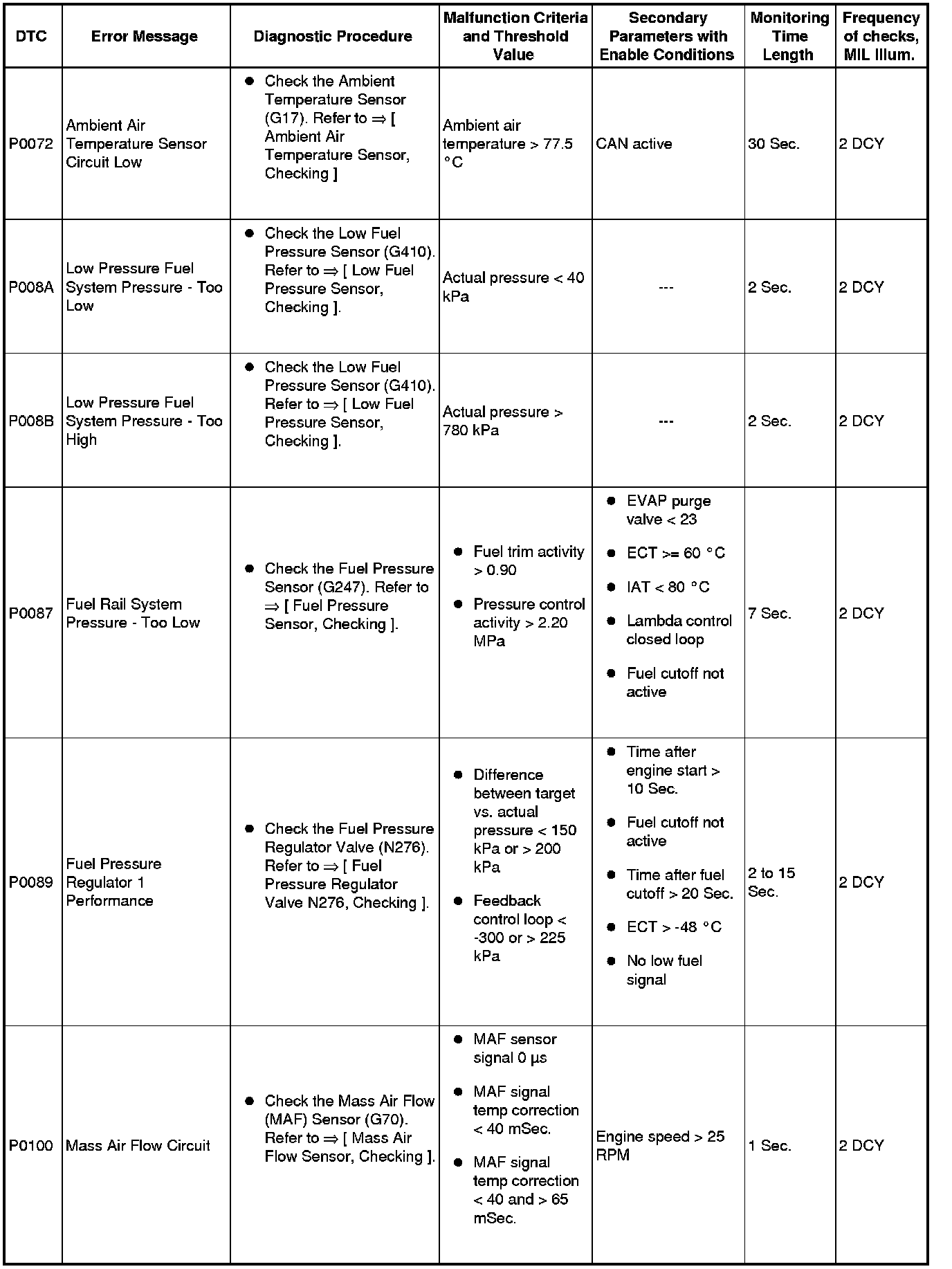 A L L Diagnostic Trouble Codes ( DTC )