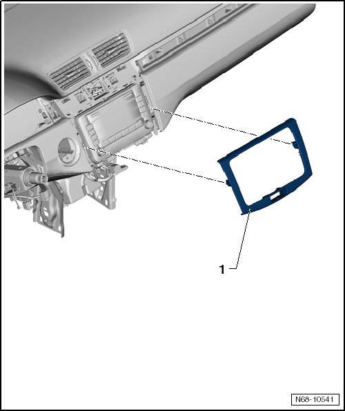 - Carefully pry the trim - 1 - out of the mount in the instrument panel with the trim removal wedge (3409).