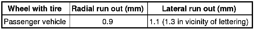 The table shows the maximum permissible tolerance values for the wheel with mounted tire.
