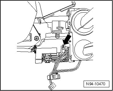 - Disengage lock - arrow B - on electrical connection - 2 - and disconnect from Steering Column Electronic Systems Control Module.