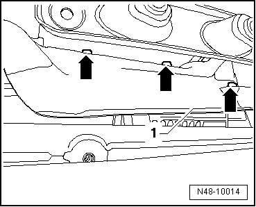 - Remove the heat shield - 1 - above the exhaust system.