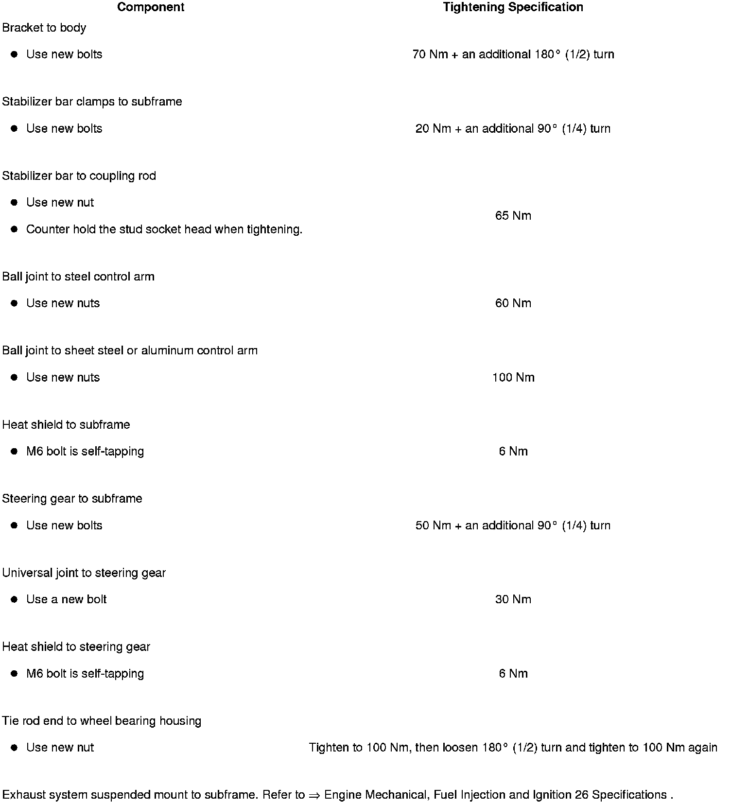 Tightening Specifications, Subframe to Body