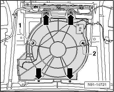 - Remove bolts - arrows - and remove clips - 1 and 2 -.
