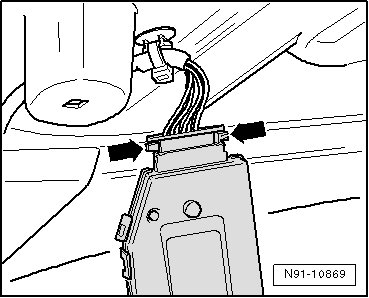 - Press locking mechanism of harness connector - arrows - and disconnect it.