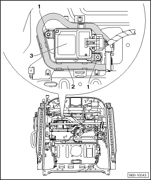 - Remove the screws - 1 - (1.5 Nm) and the passenger occupant detection system control module (J706) - 3 -.